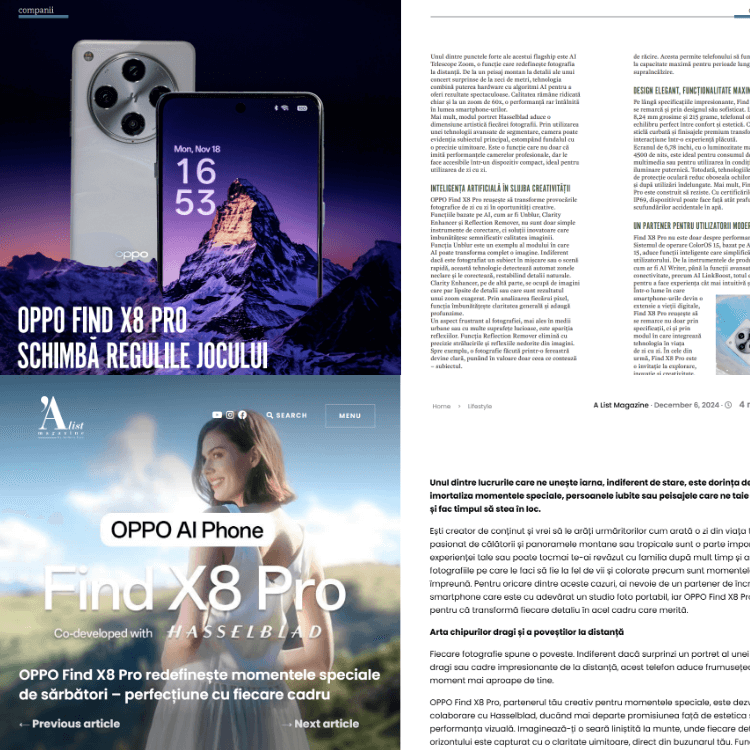 Proiecte editoriale speciale – Coperta de Crăciun A List, realizată integral cu fotografii făcute pe OPPO Find X8